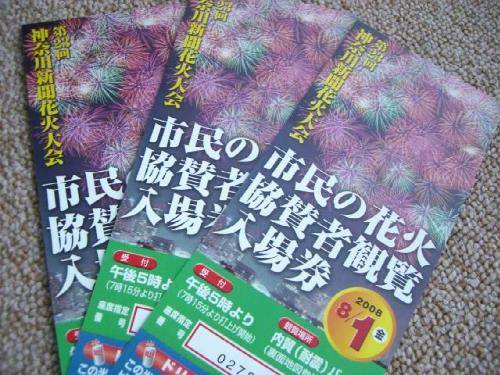 今日は雨で寒いけど、もうちょっとすると本格的な夏がきますね~。夏と言えば花火。結婚前は朝から張り切って席を取りに行ったりしていたけど、歳とともに辛い。何がイヤって「トイレ」です。これが本当に困ります。で、数年前からチケットを購入して花火を楽しむようになりました。試しに一度行ってからは、その「快適」さに感激。椅子も用意されているし、飲み物も一人2本。ビールもあるので、セコい我が家はだんな様が6本ビールを飲んで、ジュースは持参。「おやつ」もなんだかたくさん付いてきます。おととしはソイバーをやたら配っていて、帰りのバックはパンパン。ただ、食事になるものはないので会場を出て別の場所にある出店やコンビにで買出しをしなくちゃいけないけど、それでも快適~。トイレも簡易なものですが、綺麗だし、数もとにかくたくさん!トイレ待ちをすることはありません←ここが一番大事よ!ホテルに泊まるほどリッチではないし、なんとなくもったいない。でも、ちょっと贅沢してチケットを購入すると、場所とりやトイレのことを考えなくていいのでお勧めです。ちなみに楽天さんでチケット購入してまーす。