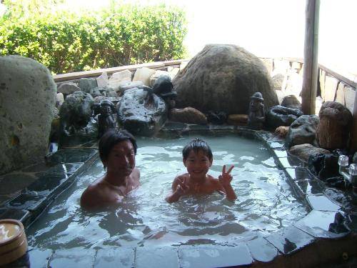 知り合いの方が持っている別荘に土曜日から一泊で遊びに。だんな様も土曜の朝、タイから帰国して合流です。今回は大人12人・子供5人での参加。大きな家で、目の前には海が広がります。お風呂は内風呂以外に露天も。持ち主の方のお友達が作られたそうで、とても立派な露天風呂です。土曜日はあいにくのお天気でしたが今日はいいお天気だったのでお庭でバーベキュー子供達は海で遊べて満足したみたいです。息子はウエットとライジャケで重装備。一番危ないことをするので用心に越したことはないです。