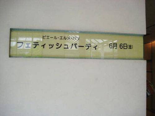 ず~っと楽しみに待っていたエルメのパーティーに行ってきました!!新宿伊勢丹、7Fのバンケットルームでの開催です。開催時間ギリギリに到着するとすでにたくさんの人。会場に入ると、すぐにグラスを進められます。私は飲めないのでお水です。入り口にはこんな感じでシャンパンやワインが・・・パーティーって感じでワクワクします。ちなみに飲み物は他に紅茶が数種類。エルメ氏ブレンドの紅茶で、イクスピアリで飲んだものと同じです。どれも個性的な味で私は好きなんですが、だんな様には不評でした。入り口からすぐのところには新作のグラスデザート。エモーション・フラゴライチゴのジュレにバルサミコのジュレさらに、「スパゲティ」を使用したデザートです。エモーション・エクストラバント「じゃがいもとコーン」を使用したデザートお友達に頼まれ、ミコノフスキ著「パタート」という本にちなんで即興で作ったものらしいです。なんでもデザートになっちゃうんだなぁ~。アントレアントル・レヴェラシオンアーモンド生地、トマト入りパートフィユテ、オリーフオイルとマスカルポーネクリーム、黒オリーブ片入り、トマトとイチゴのコンポートアントル・デリシューズ抹茶のギモーブ、わさびのジュレ、わさびマスカルポーネのクリーム、グレープフルーツの実とコンフィ個性的すぎる・・・かな?しかし、普通のパティシエでは考えられない素材の組み合わせでまさに「天才」のエルメ氏ならではです。会場の奥に行くと、まだ他にもデザートが色々と・・・パーティーが始まる前に、皆さん写真撮影をしてました。もちろん私も・・・。で、パーティーが始まる時間にエルメ氏登場!!立食パーティー形式で、会場の中にいくつかテーブルがあり、そこにグラスを置いてくつろいでいたらまさに目の前に!!近い、近すぎます。1メートルもないくらい。関係ないけど、エルメ氏って「ジャック・ブラック」似ている気が・・・。パーティーの始まりの挨拶がエルメ氏よりあり新作のデザートの成り立ちや思いを語ってくれてこれから食べるのが楽しみになります。挨拶が終わって、さぁ、食べてくださ~い。と言われたら、すぐにデザート、の前に写真を一緒にとっていただきました!「その2」に続く・・・画像がいっぱいです。