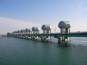 今日は天気がよかったのでいつものようにまたバイクで出かけました。夕方は子供と遊ぶのでそれまでに帰ってこれるよう計画をたてていってきました。で今日は以前から行ってみたいと思っていた、長良川河口堰 アクアプラザながらに行ってきました。以前バイクで来たときは閉館してしまっていましたが今日は朝早くにつくことが出来てよかったです。河口堰の橋は車輌が通れるようになっていましたが、車輌は通行禁止だったので歩いて向こう岸まで渡ってみました。天気がよく青空が大変綺麗でした。河口堰は大変よく出来ており、海水が上流に上らなくする役目をもっているそうでそれにより取水口からは塩分のない水が供給でき農作物にも塩害をなくすことが出来るそうです。役目はそれだけではないようで、洪水の危険性をすこしでも減らしたりとか、いろいろあるそうです。河口堰を一通り見学してから吉野家(牛丼店)で昼食をとり今度はどこへ行こうかとまよいましたが、とりあえず飛島埠頭へいってみようと思いました。はじめは道に迷ってしまいちょっと不気味な雰囲気のところに出てしまいました。 写真だと綺麗なところにみえますが・・・・。ツーリングマップルをしっかりみて、その後ちゃんと飛島埠頭につくことが出来ました。 パナマ船籍の船 すごく巨船そうこうしているうちに2時もすぎそろそろ帰途につくことにしました。鍋田埠頭もいってみたかったけれど今度にすることにしました。それと鍋田干拓地(戦後食料増産を目的に計画された名古屋の西に位置する干拓地で、現在はほとんど農地で宅地はほとんどない)も今日は探検気分で走ってきました。それと隣り合わせの木曽岬干拓地(鍋田干拓地の西に位置する干拓地で現在も使用計画があまりはっきりしていない土(荒)地)もいってみようと思い、その周辺を走ってみましたが回りはすべて堤防と用水で囲われていてアクセスできなさそうでした。でもここは野鳥の宝庫とのことでバードウォッチャーであろうらしき人やその車がその周辺のところどころにありました。帰宅してから子供たちをつれて最近この地方にもあたらしくできたライコランド(バイク用品店)へ行ってきました。大変売り場がひろく品揃えも結構ありましたが、もう夜になってしまっていたのでゆっくりみることができなかったのでまたゆっくりいつか着たいと思います。