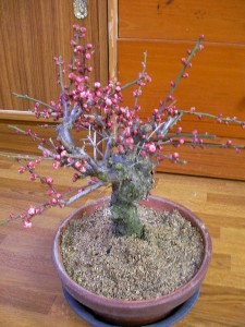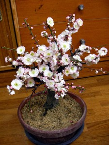 今日はお昼にすこし時間が空いたので、近くの梅園にいってきました。外はすごい寒さで車の外気温計は4℃で途中から雪が降ってきました。この梅園は所狭しとたくさんの梅の木が植えられていますが、今年は寒さが例年よりも続いているせいか、まだほとんどがつぼみで花を咲かせているのはごく一部分だけでした。屋内では鉢植えの梅がたくさん展示してありました。そとでは特産品や梅の鉢植えなどが売っていました。丁度お世話になっている知人のところへ行く途中だったのでお土産に梅の鉢植えをひとつ買って持っていくことにしました。自分用にも一鉢買いとりあえず自分の部屋に置きました。まだ全部つぼみなのでこれから徐々に花を咲かせてくれると思うと楽しみです。
