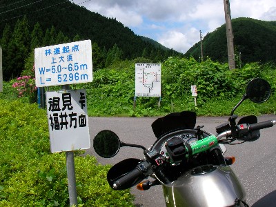 本当に久しぶりの更新になりました。でこないだの日曜日はElimiで能郷までいって来ました。能郷以北の国道157号線を期待していましたが、やはり『落ちたら死ぬ』の看板のところで通行止めでした。一度温見峠をとおり福井県大野市に抜けてみたいと思っています。別ルートで上大須ダム経由の林道もあるようなのでちょこちょこ研究してみようと思っています。日差しも強く大変 暑い日でしたので思いっきり腕が日焼けしてしまいました。
