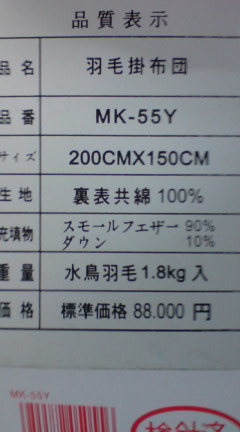 先日初めて楽天のオークションを利用しました!無事落札利用したお店はこちら。コムショット羽毛布団をゲット定価はというと88000の商品がなんとなんと…1600円!超お得送料と代引手数料を合わせても、3千円でした♪商品は段ボールに入って、こんな感じで届きました。箱を開けてみての正直な感想。「ち…ちっちゃい…?」開けてみたら、私の予想よりは薄かったけど、それなりに暖かそう。元々薄い春秋用の羽根布団1枚だと寒いので、二枚重ねで使うつもりでした。なので丁度良い感じです残る問題は一つ。布団カバーが足りない(汗)トイレトレーニング中の子がいるので、こんな防水タイプのにしようかこんな派手なのにするか子の好みに合わせてキャラ物にするか無難に無地にするか皆さんはどんなカバー使ってますか?買うとなると悩みます(´-ω-`)