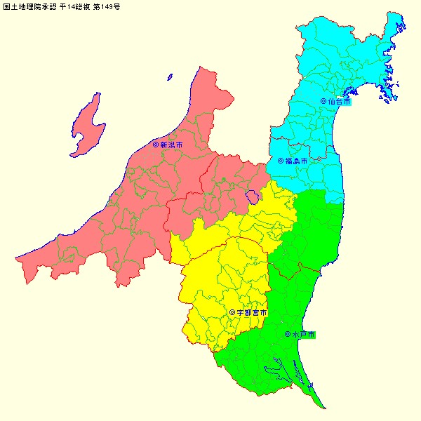 ネット上でお付き合いのある方もぼやいてましたが、昨日行われた佐藤福島県知事の参考人意見聴取は、あまり出来のいいものではなかったようですね。各質問に対して知らぬ存ぜぬで逃げ通していた感のある佐藤知事。果たして彼や福島県庁に我々のかじ取りを任せていいのだろうかという不安が、一瞬よぎりました。福島県という組織は思い切って解体してしまい、周辺各県に編入させるという荒療治が必要になってくるのかな…と、一瞬思った次第。下手すると各県の中で文字通り継子扱いされて今まで以上に生活環境が悪くなる可能性もあるのですが、逆にA県が除染や復興に力を入れたらB県もC県も負けじと対抗意識を燃やすという相乗効果も期待できるかもしれません。例えば、こんな具合に分けるのはいかがでしょうか?一応、各編入対象地域を紹介すると、以下の通りになります(人口は本年5月1日現在)。【宮城県編入地域(水色)】対象市町村…福島市、相馬市、二本松市、南相馬市、伊達市、桑折町、国見町、川俣町、双葉町、浪江町、新地町、飯舘村(5市6町1村)面積・人口…2,733.17平方キロ 584,882人編入の理由…仙台市から概ね100キロ圏内にある市町村を編入しています。福島第一原発周辺地域に関しては、原発が大熊町と双葉町との境界にあることから、ここを茨城県編入地域との境界にしています。なお、原発事故前は浪江町との交流が盛んだった葛尾村については、今後は内陸部の田村市との交流が進むと見込み、田村市と同じ茨城県編入地域に加えています。【茨城県編入地域(緑色)】対象市町村…いわき市、田村市、棚倉町、矢祭町、塙町、鮫川村、石川町、平田村、浅川町、古殿町、小野町、広野町、楢葉町、富岡町、川内村、大熊町、葛尾村(2市11町4村)面積・人口…3,436.46平方キロ 494,495人編入の理由…いわきナンバー地域をベースに編入地域としました。なお、いわきナンバー地域のうち、双葉、浪江の両町は先述したとおり福島第一原発を宮城県編入地域との境界に設定したことにより、玉川村は福島空港を擁するため編入地域にした場合一県二空港となってしまい茨城県に余分な負担をかけかねない懸念から、編入地域より外しています。田村市は福島ナンバー地域ですが、かつて市内の一部がいわきナンバー地域だったこと、また川内村や葛尾村との交流が進むことを見込み、編入地域に加えています。【栃木県編入地域(黄色)】対象市町村…郡山市、白河市、須賀川市、本宮市、大玉村、鏡石町、天栄村、下郷町、檜枝岐村、南会津町、西郷村、泉崎村、中島村、矢吹町、玉川村、三春町(4市5町7村)面積・人口…3,786.55平方キロ 626,678人編入の理由…郡山市の編入地域については宮城県か栃木県かで迷ったのですが、仙台市よりも宇都宮市の方が若干近いことと、福島市と同じ地域に入れると何かと面倒になりそう(苦笑)な予感がしたので、栃木県としました。また、只見町を除く南会津の処遇についても会津地方の団結力の強さに考慮し新潟県に編入させようかと考えかけたのですが、交通軸としての会津鬼怒川線の存在が大きいこと、また国道289号線甲子道路の開通に伴い白河市との交流が増えたことに鑑み、思い切って会津を分割し、栃木県編入地域としました。【新潟県対象地域(ピンク色)】対象市町村…会津若松市、喜多方市、只見町、北塩原村、西会津町、磐梯町、猪苗代町、会津坂下町、湯川村、柳津町、三島町、金山町、昭和村、会津美里町(2市9町3村)面積・人口…3,826.58平方キロ 262,229人編入の理由…下郷町、檜枝岐村、南会津町を除く会津地方全域が対象となります。新潟市に近いという他に、特に理由はありません。…所詮戯言です。「そういう風になったらどうだろうな~」と、ふと思いついただけです(苦笑)