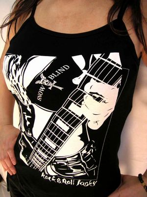 ギターならレスポールだろ!という人にオススメです。ギブソン レスポールを胸に画いたロックなキャミソールSNOW BLINDならではのデザインROCK & ROLL JUNKY キャミソール