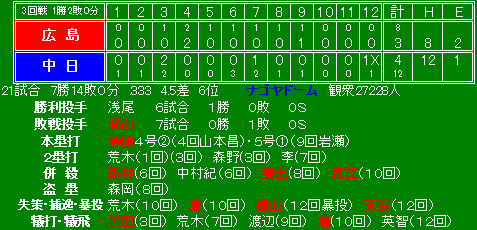 黒田 にも劣る野手が3人・・・しかも好調 がその4人のど真ん中・・・彼らはみんな得点に絡まず。 新井 もトンネルから出る気配すら無し。いったいいつ「打線」になるのだろうか・・・特に 梵・緒方