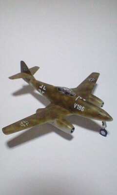 年度末のバタバタ(本業)や、お仕事としての完成品作りが終わって、ようやく落ち着いてきた今日この頃です(^ε^)先日わが家のパソコンが逝きました旧~いOSと、へなちょこなスペックで今までよく頑張ってくれましたm(_ _)mイイ機会なので、代替え機を購入しようという事になりました(=^▽^=)高額商品ゆえに、すぐにとはいきませんので、しばらくは携帯からのアップになりそうです(^_^;)模型ネタが無いとチト寂しいので、依頼品納品後 3日間くらいで、こんなのを作ってました♪ メッサーシュミットMe262ハセガワの1/72を素組しただけの簡単仕上げです(気分転換用なので、手抜きッス)V186のスコードロンナンバーは“ハインツベア”なので、正確にはカラーリングが違っていますが、息抜きなので“雰囲気塗り”です(笑)考証や細部ディティール再現もありですが、好きなように楽しみながら作る事が一番大切だと思います(*^-^)b
