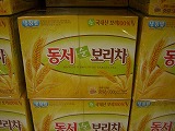 「韓国のお茶」と聞いた時に、緑茶を思い浮かべる人は、そういないと思います。私には「体に効くお茶」というイメージがありますが、皆さんはいかがでしょう。昨日、渡○教授様より「韓国のお茶について調べて欲しい。」と言われて、さっそく日本側のサイトで検索してみたところ、意外とお茶全般的に書かれたものは無くて、韓国サイトは案の定、どのお茶がどういう症状、病気に良いかという案内のようなものが、ほとんどでした。ところがスーパーに行けば、砂糖や蜂蜜で加味されたお茶や、そのままティーバックになったお茶が、一つのコーナーいっぱいに並んでいます。体を考えたお茶というより、嗜好品としてのお茶が一般的には浸透しているようです。食堂で「お水下さい。」と言えば、昔は麦茶かとうもろこし茶、少し高級になるとトングrレ茶が出てきました。でもそれは、お水を沸かして飲んでいた頃の話で、この頃は浄水器が普及して、そういう風情も無くなりつつあります。今日はそういうわけで、お茶を色々紹介したいと思います。日本のお土産にも喜ばれますので、参考にしてみてください。おなじみ、麦茶。麦の絵が・・・(ポリ茶)とうもろこし茶(オkスス茶)トングrレ茶玄米緑茶(ティーパック・ヒョンミノk茶)こんな玄米緑茶も新発売柿の葉茶(ティーパック・カミp茶)有名なゆず茶(ユジャ茶)かりん茶(モグァ茶)梅茶(メシr茶)なつめ茶(テチュ茶)しょうが茶(センガン茶)漢方茶(ハンバン茶)じつぼさんの匂いがする・・・と母が言ってました。風邪の時に効きそうな感じ。漢方茶(宮中茶)とも言う。くずの木茶(チk茶)ちょっと苦い。漢方茶(ッサンファ茶)タバンで頼むと玉子の黄身入りで出てくる。疲労回復、風邪に良いとか。山いちご茶(サンタrギ茶)ポkブンジャ茶とも言う。よもぎ茶(ッスk茶)飲む草もち?かぼちゃ茶(ホバk茶)お茶というより、ホバkチュk(かぼちゃのおかゆ)のような感じ。やまいも茶(マ茶)はとむぎ茶(ユrム茶)黄な粉茶に似てます。こぶ茶(ダシマ茶)今日、初めて発見。なつめ茶の粉末。サンスユ茶。山茱萸と書くらしいが、よく分からず。オミジャ茶。これも五味茶と書くが飲んだことが無い。このシリーズはゆずも梅も山イチゴも粉末ではなく、スティック状になっているので、ビンのを買うよりお土産用として良い。なかなか売ってなくて、セイブゾーンで発見。キョrミョンジャ茶。決明子茶と書くが、ハッカのようなスッキリ感のあるお茶だった。赤い。月花の話というお茶ですが、金木犀の香りのするお茶で、私は好きです。ココで金木犀を見た事がないので、何となく日本を思い出します。写真には撮れませんでしたが、他に、クコの実茶(クギ茶)、くるみ茶(ホドゥ茶)、いちょうの葉茶(ウネン茶)、びわの葉茶(ビパ茶)、松の葉茶(ソrイp茶)、そして、おなじみの高麗人参茶などがあります。これからも第二弾を出せるように、チェックしてみたいと思っています。ちなみに緑茶は高くて不味いです。100グラム2000円以上の、いかにも高い入れ物に入った緑茶を頂いたので、お茶にうるさい母に送って感想を聞いてみたところ、日本だったら300円くらいのお茶かしら・・・と申しておりました。お茶の葉は有機とかでお金をかけて栽培しているのですが、摘んだ後の加工が拙いようです。刺身と同じ・・・か。うーむ。