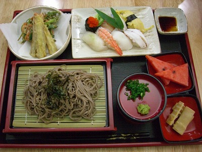 今日も爽やかなお天気の中、日本食を食べる会に行って来ました。今日は家を出るのが遅くなり、もしかしてバスの方が早いかも・・・も思い、103番の座席バスで行って見ました。予想通り、バスがすぐ来て約30分でお店に到着できました。この頃、地下鉄と競争なのかバスの本数も増え、利用しやすくなった気がします。今日は待ちに待った日本蕎麦実演の日。サムイ姿で、いかにも蕎麦打ち名人という感じの仲○教授様が手馴れた感じに作業を進め、今日を楽しみに集まった日本人や、噂を聞いて食べに来た韓国人が、物珍しそうに見学していました。それに負けじと、厨房では板さん方が腕によりをかけて握り寿司に天麩羅と、豪華なお料理を準備して下さり、先週ソウルから来た友人は悔しがるだろうな~!と思いつつ、ニコニコと手打ち蕎麦&握り寿司御膳(定食じゃないっしょ!)堪能させていただきました。まあ、写真を見てやってください。ねっねっ?!御膳でしょ?!お蕎麦は、家の近くにも蕎麦専門店があるのですが、そばが茹ですぎでイマイチなんですが、今日は、私の好みのちょっと硬めで、麺の腰がありとっても美味しかったです。寿司、お料理は言うまでもありませんが、主婦達にはごぼうの天麩羅が人気でした。たけのこも、生のが市場で売っていたそうで、韓国で初めて缶詰以外のたけのこ食べました。帰りに、残ったたけのこを使った散らし寿司をお土産にいただきましたが、これも、先ほど夕食として美味しくいただきました。ありがとうございました。ところで、お知らせです。残念ながら、この日本食を食べる会は6月からは、毎週でなく第2、第4土曜日に実施される事になりました。皆さんカレンダーにしっかり印をつけて、忘れずにいらっしゃってくださいね。この食堂は、これから日本の本、雑誌の貸し出しや、掲示板など設置する予定で、日本人の交流の場としていきたいと思っていますので、どうぞよろしくお願いします。メニューなども、リクエストありましたら、どしどしお願いします。