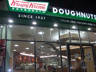 ご無沙汰しておりました。寒い冬に里帰りは避けていたのですが、とてもラッキーな事があり、ただで、ビジネスクラスにも乗って、そして暖かい東京に行って来ました。明洞でも、すごかったけど、新宿でスッゴイ行列を見ました。このドーナツ屋さんでした。さっき、大田の市庁駅で地下鉄を降り、8番出口をエスカレーターで上がってきてふと、前を見たらあったんです。位置的には市庁の横向かいという感じ。2月8日の10時開店だそうです。最初のお客には一年間一ダースのドーナツが届けられるそうです。2,3番目には半年。その他、色々開店イベントがあるようです。とっても明るくて広いので、お茶するにも良いと思います。hanuruさん、良かったね!!