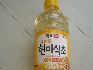 以前、いつも使っている醤油を紹介しましたが、今日はお酢です。韓国の調味料の中で、一番日本の味と大違いというのがお酢でした。これを知るまでは、業務用の大きいお酢を日本から持ち帰っていました。今は本当にお酢の味で勝負!という料理にだけ日本の物を使えば良いので、小さい物で間に合うようになりホッとしてます。以前はあるところにはある。という物で、友人が注文して買ったものを分けてもらっていましたが、今はココもお酢ブームで、スーパーで買えるようになりました。これもホームプラスで買ったものです。900ml1290ウォン。