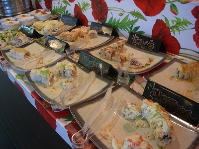 前回、取材だけして食べていなかったすしビュッフェに行って来ました。今日は韓国在住10年以上の日本人妻3人で・・・。その時交わした会話で、どのくらいのレベルかお分かりになると思います。「え~!思ったよりたくさんあるね!!」「あら、あの時は分からなかったけれど、ソフトドリンクやコーヒーもあるわ。」「それに、アイスクリームも」「サービスで出されるお味噌汁も日本の味だし。」「ほんと、値段気にしながらあのデパートで食べるより、ずっといいわ!!」「ここのイカ美味しい!!ココでこんなに美味しいイカのおすし初めて!」こんな具合で、ずーっと感激しながら食べまくりました。^^カルフォルニアロールだけで8種類あり、それを全種食べただけでもお腹にたまります。「次回は、握り寿司だけでお腹いっぱい食べたいわ!!」という人も。あとは写真を見て判断してください。今日は予約の電話をしたけど、そのまま来ても大丈夫と言われてそのまま行きました。お店の方の感じも良く、オススメです!!