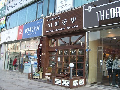 ノーウン区といって、ワールドカップ競技場方面に新しい団地地区が出来て何年たつのでしょう?今の大統領が大田を首都にすると公約して当選した為、この地区も大きな投機地区となり、西区から引っ越した人も多くいました。確かに空気は綺麗でよいのですが、その頃はまだ地下鉄も通じてなく、とても不便という認識しかなかった為、私には興味のない地区でした。でも、地下鉄が通じ、どんどん発展しているノーウン地区にはオシャレなお店も増えて、大きなスーパーの建築許可が出たという事で、少し興味をもってみているところです。そのノーウン地下鉄駅で降りて、近くを散策してみました。今回目に付いたのは、コーヒー工房という豆を直接焙煎しているお店。さっそく、豆と旅行に便利な一人用のコーヒーフィルターセットを買いました。ちょっと高めで驚きました。豆が200グラムで16000ウォン。特殊な豆でなく、ブラジルやモカがです。日本の3倍はしますね。でも、さすがに買って帰った日はお部屋中コーヒーの良い香りで、買って良かった・・・と思いました。^^もちろん、お店でコーヒーをゆっくり飲むことも出来ますが、一杯5000ウォンもするので・・・。^^それから、商店街にパン屋さんがあったので入ってみました。パンよりクッキー類の多い、何となく日本のケーキ屋さんを思わせる雰囲気。よく見てみたら、日本で製菓製パンを勉強してきた方のお店でした。さっそく、私の味の基準,食パンとあんぱんを購入。^^それとソボロパンではなく、メロンパンっぽいものが目に付き、買ってみました。食パンは「もちもちパン」という名前で期待が膨らみます。韓国の食パンは薄くスライスされているので、もちもち感を実感するにはもったいない・・・という感じですが、味は今まで食べたパンの中では一番です。値段も2000ウォンと良心的です。次回は、電話してスライスしない物を買いたいと思いました。メロンパンは、中にカスタードクリームが入っているので、甘党の方にオススメです。地下鉄で簡単に行けるようになったノーウン地区。これからの発展が楽しみです!!