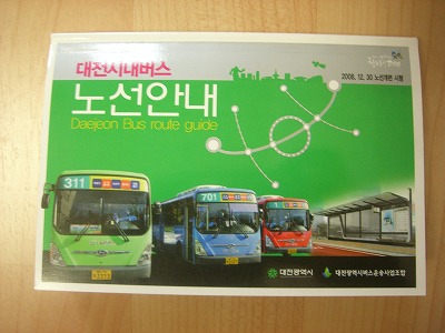 本当は10月からと言っていたバス路線の変更が、なぜか年も押し迫った12月30日から実施されます。もう、テレビのコマーシャル、バス内のポスター、それから各家庭に配られているバス路線手帳によってご存知だとは思いますが・・・。うちのアパートのポストにも昨日入ってました。今回、路線の他にバスのカラーも変わります。それと、大きく3つの事が変わります。1、今まで60分以内1回乗り換え可能だったのが、 80分以内3回乗り換え可能となります。2、保護者と共に乗る6歳未満の子ども料金ですが、 今まで1人無料だったのが3人まで無料となります。3、座席バス(1400ウォンのバス)が無くなります。 すべて、950ウォンです。私的には結構便利になるのですが、何回も乗り換えなくちゃいけなくなる人もいるようで、便利になったのかどうかは、実施されてからですね・・・。