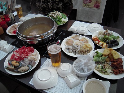 今回は、桃色好きなももぴよさんも誘ってストレス解消飲み会をして来ました。行ったのは、マンニョン洞のイタリア料理chinchinの横にあるビルの2階にある「ワンしゃぶ」(セロナム教会駐車場の裏)日本人会会長の西○さんがランチで利用し、飲み放題なのにビールも美味しかった!!夜に行ってシッカリ飲みたい!!という事を言っていたので偵察もかねて行きました。ランチは11000ウオンだったそうです。夜は平日は16000ウォン、週末は18500ウォンです。料理はこんな感じ、他に揚げたて天ぷら、寿司や刺身、酢豚、フルーツ、ケーキも。コーヒー、ジュースも数種類あります。タレは味噌ダレが美味しかったですが、ポン酢は無いので持参をオススメします。すっかり、韓国人化した私の舌はポン酢だけでは物足りず、ポン酢&にんにくダレを持参したのでたくさん食べちゃいました。^^海鮮類牛肉もから揚げなどご飯類konahaさんが好きなコニ(白子)最後に、残ったスープにご飯や、野菜、のり、卵など入れて韓国式に雑炊を作って食べました。3時間も飲み食いおしゃべりし、日本の女性も結構すごいね~~と噂されたと思います。^^以前、ドンサン洞にクイーンしゃぶという似たようなお店がありましたが、そこより安くて、何といってもビール飲み放題なのでお徳です!!席も多いので予約無しでも大丈夫です。
