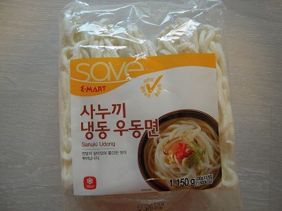 円高の影響で、コストコの日本製冷凍うどんが値上がりし困っていましたが、Eマートブランドの冷凍うどんを見つけてから、愛用しています。何人かの日本人に当然知っていると思って聞いたところ、「初めて聞いた!」という人が多いのでお知らせしますね。お値段は、5個入りで1980ウォン!!コストコの5分の1ですか?お味も、うちの夫が気がつかずに黙って食べているところをみると大丈夫なようです。^^お料理上手のhanuruさんも、冷やしうどんにすると、つるつるシコシコすぐ食べちゃうと、来る度に買って行きます。新しい冷凍ショーケースの上のほうに売ってます。