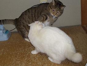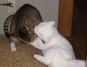 今日は朝からよい天気で最低気温は2℃、最高気温は11℃である。明日と明後日は雨の予報である。(もうすぐ大晦日。我が家のK-1前哨戦。イテテ! ホッペタを噛むのは反則だぞ。)ホームセンターでエリカ・ダーレンシスを買ってみた。(エリカ・ダーレンシス。ツツジ科の常緑低木である。)耐寒性が強い品種らしいのでこのあたりなら冬は屋外に置いたままでよさそうである。ただし、耐寒性が強いということは、耐暑性が弱い可能性が大きいので夏越しがちょっと気になるが、ラベルには夏越しの方法についての記述はない。木陰に置くぐらいで夏越しができればいいのだが・・。・・・・今日は赤系統の花を集めてみた。(先日開花したこぼれ種のデージー。)(我が家のアイビーゼラニウム。)(我が家のサザンカ。)(よそのカランコエ。)(道端のアカツメグサ。)(よそのストック。)(よそのマーガレット。)(よそのプリムラ・マラコイデス。)