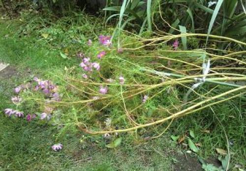 今日は気温19~23℃、曇り時々雨である。明日は気温19~24℃、曇りのち晴れの予報である。ホトトギスが咲き始めた。(ホトトギス。フェンスからお隣さん側にはみ出て咲いている。)昨年の10月14日に比べて1週間以上早いが、05年以降の咲き始めは、05年 10月 9日06年 10月 8日07年 9月23日08年 9月26日09年 10月 6日10年 10月12日11年 10月 1日12年 10月14日13年 10月 6日ということで、昨年は最遅記録であり、今年は特に早いということではなく、例年の平均に近い感じである。・・・・・・(ガーデンシクラメンを買ってきた。昨シーズンは1月末まで外に出しており、厳寒のためか?春になる前に枯れてしまったので、今年は氷点下になるころには室内に入れるつもりである。)(八重コルチカムの2輪目の蕾が出てきた。)(フジバカマ。)(トレニアを撤収して、)(こぼれ種のベゴニアを5株追加定植。プランター植えの累計は54株。)・・・・・今日は町内会の運動会に行って玉入れに参加してきたが、開会式の来賓のあいさつが長くて閉口した。地域の交番の所長、消防分署長、場所を提供してくれた小学校の校長さんぐらいは妥当だと思うが、議員さんたちは・・名前の紹介だけで勘弁してほしい。