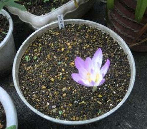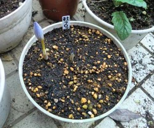 今日は気温11~18℃、晴れである。明日は気温11~17℃、晴れの予報である。9月に球根を植えたチューリップ・ライラックワンダーが発芽を始めた。(発芽したライラックワンダー。16球のうち1球が発芽した。)昨年の発芽は11月12日だったので、今年は2週間近く早いが、初めて植えた10年は11月1日に発芽してるので、特別に早いということでもない。チューリップは冬の寒さを経験しないと発芽しないと聞いているが、ライラックワンダーに関してはあてはまらないようだ。ただし、発芽は早くても、開花は4月中旬~下旬であり、普通のチューリップと同じぐらいか、むしろ遅いぐらいである。(今年4月に開花したライラックワンダー。)(なお、小さい球根を7球植えた2軍では3球が発芽した。)・・・・・・ネリネの球根がホームセンターで安売りになっていたので買ってきた。(ネリネの球根。398円が199円になっていた。ラベルでの植付け時期は8/上旬~10/下旬となっているので、今日がタイムリミットである。)(7号鉢に植付けた。)ラベルでの開花時期は10/中旬~11/下旬となっているが、近所では1月の初めに咲いているのを見たことがある。一応植付け時期の期限内ではあるが、同じヒガンバナ科のリコリスを3種類植えた時は3種類とも初年度は咲かなかったので、今回の開花期待度は半分ぐらいにしておく。なお、半耐寒性ということなので、近所で1月に開花してるのを見た時は屋外だったものの、少なくとも厳冬期の1月中旬~2月中旬ぐらいには室内に入れた方がいいかも知れない。・・・・・(昨日開花した秋咲きクロッカスは今朝は閉じていたものの、)(日中は開いた。)(2輪目まで開花していたサフランは3輪目の蕾までナメに食われてしまったが、4輪目と5輪目の蕾が付いている。昨夜とその前夜は2晩続けて雨が降ったのでナメが活発だったようだ。)(ツルバギア。)(チェリーセージ。)