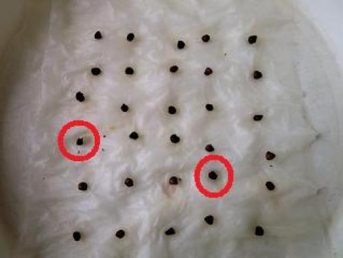 今日は気温19~27℃、晴れである。明日は気温21~26℃、晴れの予報である。5日に濡らしたテイッシュの上に追加種蒔きをしたアグロステンマが発根した。(30粒のうち赤〇の2粒が発根。)(早速土の上に移動。記念撮影後に覆土。)葉が出てくるまでは安心できないので、とりあえず36連トレイから切り取った区画に移植したが、葉が出てきたら10.5cmポットに植替えるつもりである。・・・・・・チューリップ・アイスクリームの球根を買ってきた。(チューリップ・アイスクリームの球根。1球で298円であった。)(6号深鉢に植えた。)アイスクリームは他の人のブログで見たことはあるが、近くのホームセンターで売ってるのを見たのは初めてかも?である。普通のチューリップの球根よりやや小ぶりであるので、開花するかどうかちょっと心配ではあるが、来春が楽しみである。・・・・・(キンモクセイが咲いていた。)(インパチェンス。)(八重コルチカム。)(ゼフィランサス。)(ハンギングプランターに2株ずつ植えたベゴニアの左の株が枯れてきたので、)(こぼれ種の新しい苗と植え替えた。)