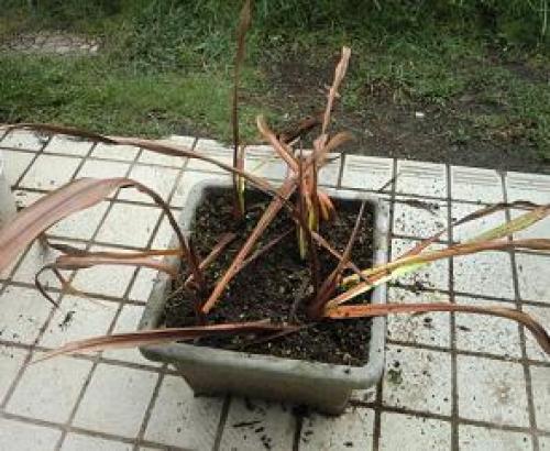 今日は気温21~22℃、雨のち曇りである。明日は気温20~27℃、曇りのち晴れ時々雨の予報である。・・・・・・消費税がいよいよ上がるそうだ。ここ2年ぐらいで5% → 8% → 10%と、5%上がるようだ。一方、年金は2.5%減額となり、さらに、政府はインフレ目標2%とかで1年で2%、2年で4%・・・の物価上昇を目指している。となると、年金生活者としては、再来年ごろには生活レベルを差引11.5%分落とさざるをえなくなるという計算になる。なお、年金は物価上昇に応じて上がるしくみになっているらしいが、当然タイムラグがあるし、上がるにしても国民年金や厚生年金だけであり、企業年金の多くは多分据え置きである。いずれ、霞を食ってでも生きていけるように訓練しなくては・・・。・・・・・ワトソニアの葉がようやく枯れてきたので、今日は植替えをするつもりであったが・・・(葉が枯れてきたワトソニアのプランター。)(葉の付け根を見ると、緑の葉が出ている。)(枯れた葉を全部取り除いて見たら、4球植えてある全部が発芽している。)こうなってしまっては、根を傷める心配のある植替えはかなり勇気が必要なので、今回は断念することにした。なお、昨年は9月10日に掘り上げて、9月30日に再植付け、10月21日に発芽という経過であったのだが、今年は枯れるのが遅かったのにもかかわらず、発芽が3週間も早いというちょっと想定外の経過をたどっており、植替えのタイミングを逸してしまった。このワトソニアは11年秋に4球植えたのが初めで、翌12年に4球のうち1球が開花したのだが、今年は複数開花を期待したものの、逆に1球も咲かなかった。来年は少なくとも1球、できれば2球分ぐらいは咲いてほしいものである。(昨年開花したワトソニア。)・・・・・(冷蔵していたチューリップの球根を今日から春ということで、やや温度の高い野菜室に引っ越しさせた。ここで半月過ごさせて10月16日に植える予定である。)(球根は特に異常はない。)(9月20日に種蒔きしたポピーに一向に発芽の気配が無いので、追加種蒔きをした。)(また、同じ9月20日に蒔いたアグロステンマとルピナスも発芽の気配なし。数日前にアグロステンマに発芽の兆しがあったのだが・・・??)(マラコイデスを20株追加定植。累計219株。)(マラコイデスの残りはざっと300株+α。)