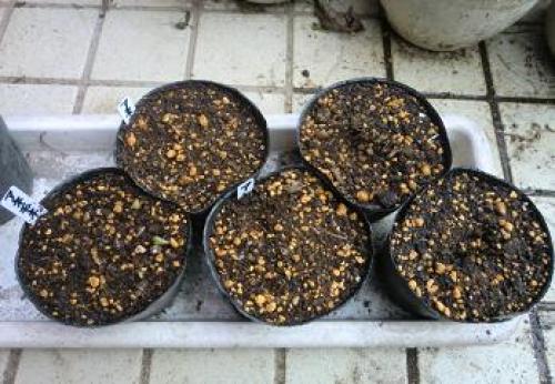 今日は気温13~18℃、曇りである。明日は気温15~19℃、雨のち曇りの予報である。9月に球根を植えたアネモネが発芽した。(アネモネ。5ポットあるうちの前列左のが発芽した。)昨年2月に開花苗を買ったもので、花後に球根を掘り上げて乾燥保存後再植付けして今春も開花したものを、再び掘り上げ-乾燥保存-植付けを繰り返したものであり、来春開花すれば、3回目の開花となる。昨年秋の発芽は10月30日だったので、今年は10日ほど早い。咲き始めは3月下旬の見込みである。(今年春に開花したアネモネ。)なお、残りの4ポットは、今年1月に開花苗を買ったもの3ポットとこぼれ種(球根)のもの1ポットである。(また、同じ日に植えたラナンキュラス3ポットはまだ発芽してない。)・・・・・(濡れティッシュの上に蒔いたアグロステンマがまた1粒発根したので、)(ミニポットに植えた。)(フジバカマ。)(コスモス。)(ツルバギア。)
