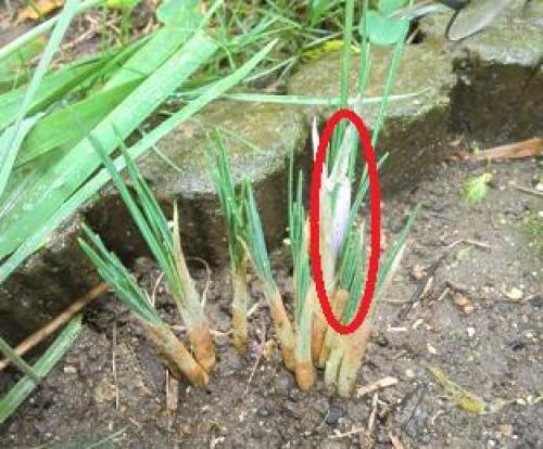 今日は気温12~18℃、雨のち曇りである。明日は気温10~19℃、晴れの予報である。サフランに蕾が見えてきた。(サフラン。赤〇部分に蕾が見える。)サフランはクロッカスと同じように蕾が見えるとすぐに開花するので、明日か遅くとも明後日には開花するかも知れない。昨年の咲き始めは11月9日だったので、今年は10日以上早くなりそうだが、発芽も半月ほど早かった。(なお、別の場所のサフランにはまだ蕾は見えない。)(また、鉢植えのもまだである。)・・・・・(オキザリス・ヒルタにも蕾が出てきた。これもすぐに開花しそうであり、昨年の咲き始め11月4日に比べ1週間ほど早くなりそうだ。)(秋咲きクロッカスは10月3日に発芽して以来、変化に乏しいが、)(2本発芽しているうちの左側の先端が紫色っぽくなってきたので、そろそろ蕾が出てきそうな気がするが、)(右側の先端が何故か黄色っぽい。)・・・・(マラコイデスを4株定植。累計267株。今日の4株も全部白の見込みである。)