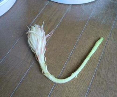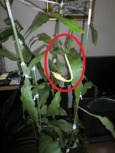 今日は気温16~19℃、雨である。明日は気温16~22℃、晴れの予報である。月下美人に蕾が出てきた。(月下美人の蕾。)06年に挿し芽苗を買ったもので、5年目の10年秋に蕾はいくつか付いたものの咲く前に全部落ちてしまい、初開花は11年8月であった。ところが、昨年は蕾も出なかったので、今年もし咲けば2回目の開花ということになる。今日現在の蕾の育ち具合を、11年の開花時と比較すると、開花まであと4~5日のようだ。(11年に開花した月下美人。)・・・・・・(濡れティッシュの上のアグロステンマの種がまた3粒発芽した。)(ミニポットに植えた。)(これで、発根してミニポットで発芽待ちの種は6粒である。)(発芽しているのは9月20日種蒔き分を合わせて3本である。)(最初に発芽したものは本葉が出てきている。)(さらに、もう1本出てきているが殻が硬いのか?なかなか葉が出てこない。)