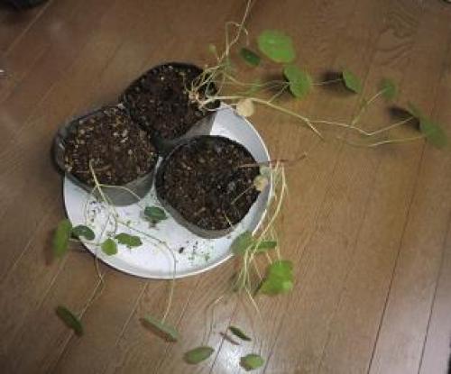 今日は気温4~8℃、雨時々曇りであり、風がやや強い。明日は気温3~9℃、晴れ時々曇りの予報である。こぼれ種ナスタチウムを先月中旬から室内に入れているが、やはり徒長してきたので、切り戻して、挿し芽にした。(ポット上げして室内に入れているこぼれ種ナスタチウム3株のうち、)(1株が特に徒長したので、)(切り戻して、先を挿し芽にした。)ナスタチウムの前回(10-11年)の冬越しは、それ以前の経験から徒長することがわかっていたので、室内に入れるのはなるべく遅い方が良いということで、12月末にしたのだが、今回は置き場所の都合などで、早く室内に入れていた。12月末に室内に入れた前回でも1月末に伸びたのを切り戻しているので、今回ももう一度ぐらいは切り戻しが必要かも知れない。なお、ナスタチウムは今年は我が家では開花していないので、このナスタチウムは昨年以前にこぼれた種からのものである。・・・・・・(今日あたり開花の予想だったクリスマスローズ・コルシカスの蕾はお預け。)(その代わり、別の株にも蕾が出てきた。)(バーシーカラーは16日に開花したが、その後は休業状態。)(12月初めにチューリップと一緒に植えたムスカリが発芽を始めた。)(クロッカス。)(アリッサム。)(サザンカ。)