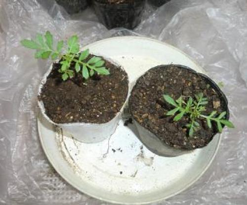 今日は気温7~9℃、曇り時々雨である。明日は気温4~10℃、曇り時々雨の予報である。こぼれ種マリーゴールドに蕾が出てきた。(こぼれ種マリーゴールド2株。11月に室内に入れていたものである。)(蕾。)(もう1株にも蕾が見える。)こぼれ種マリーゴールドを室内で冬越しをさせた経験としては、06~07年の冬に20株ほどを室内に収容したことがある。この時は20株のうち冬を越したのは8株であり、開花は4月初めになってからであった。マリーゴールドはサルビアに比べて、発芽適温は低いが耐寒性は劣る。ということで、今回のマリーゴールドも蕾が出てきたとは言え、2株のうち1株が冬越しできればいい方かも知れない。また、冬越しができたとしても生長は極めて遅いので開花はやはり4月になってからかも知れない。(なお、ただ1株だけ残っていた親株も枯れたので撤収した。)・・・・・・(今日は雨模様であるが、外の方が明るいので日中はチューリップを外に出した。)(生長速度が早いので毎日見るのが楽しみである。)(プランターに定植したこぼれ種のノースポール。)(ほぼ全部の株に蕾が出ている。)(こちらは9月末に買ったノースポール。)(オキザリス・レグネリーがまだチラホラ咲いている。)(ユリオプスデージー。)