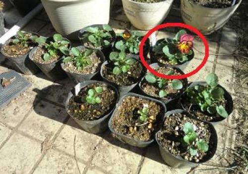今日は気温5~10℃、晴れである。最低気温は5℃であったものの、体感としてはもっと低かったような気がするが、最高気温が上がらなかったためかも知れない。明日は気温3~11℃、晴れのち曇りの予報である。8月15日に種蒔きをしたパンジーが絶不調ながらようやく開花した。(種蒔きパンジー。全部で12株。赤〇が開花株。)(メープルリカの系統である。)例年ならば10月中旬に蕾が出てきて、1週間~10日後の下旬には開花するのだが、今年は蕾を見つけた11月10日から開花まで気温が低い時期であるので、やはり予想通り1ヶ月近く要した。(こちらは2号。明日か明後日には開花か?メープルリカのようだ。)(なお、こちらは8月1日種蒔きのビオラ。開花まで1週間前後か?)(また、こちらはこぼれ種ビオラ。100株以上ポット上げしている。)(こぼれ種ビオラの開花はしばらく間が空いていたが、後続部隊がそろそろ開花しそうだ。)