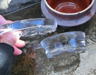 今日は気温-3~4℃、晴れである。(今日は昨日よりはるかに氷が薄かった。上が今日の氷で、下が昨日取り出した氷で1日経過したもの。)(ビオラはグッタリしているものの、昨日よりはマシなようだ。)(デージーも昨日に比べればいいかも?)(チロリアンデージーは普通のデージーよりも寒さに弱いという印象だったが先入観だったかも?全く問題無いように見える。)明日は気温0~7℃、晴れの予報で今日よりも気温が上がるようだ。・・・・・・雪柳の新芽が出てきている。(鉢植えの雪柳。こぼれ種から生えてきたもので初開花は12年である。)(新芽が出てきている。)寒波が来てるのにそれにも負けずに新芽が出てきているのを見るのは嬉しいものである。例年通りならば2月下旬に蕾が出てきて、3月中旬~下旬に咲き始める予定である。(昨年3月の雪柳。)