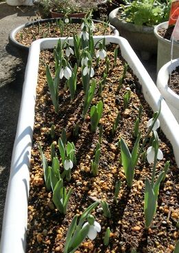 今日は気温-1~5℃、晴れである。明日は気温-2~4℃、晴れの予報である。1月10日に咲き始めたスノードロップは2軍を合わせて現在14輪ほど開花している。(スノードロップ。)(2軍の1輪。)昨年は1月3日に咲き始めて、2週間後の1月17日には22輪まで開花しているので、それに比べて今年はテンポが遅い。この冬は昨冬に比べて氷点下になる日が多いような気がするので、そのためかも知れないが、スノードロップの花期としてはまだ1ヶ月ほどはあり、これからの巻き返しを期待したい。昨年は81輪開花したが、今年は果たして?(このあたりの苗たちはまだまだこれから。)・・・・・・・(ストック。)(日本水仙。)(キンセンカ。)(ガーデンシクラメン。)(デージー。)(ホタルブクロ。)(プリムラ・ジュリアン。)