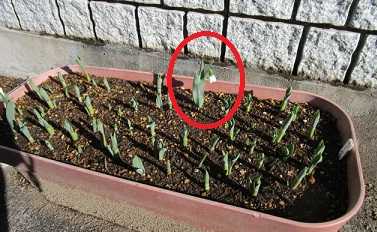今日は気温1~8℃、晴れ時々曇りである。明日は気温-1~6℃、晴れの予報である。10月に球根を植えたミニチューリップ・リニフォーリアが発芽した。(リニフォーリアのプランター。円形プランター2個に約30球ずつ計約60球植えてある。)(左のプランター。)(他にも何本か発芽している。)(右のプランターでは1本発芽。)昨年の1月30日よりも1ヶ月近く早く、2018年1月13日の最早記録をも10日ほど更新した。今シーズンは他のチューリップでも全体的に早い傾向があるようだ。先日はブライトジェムが土砂降りにより土が移動して浅くなった部分で発芽したというのがあったが、その後はそれほど浅くないはずの場所でも発芽しているので、もしかしたら以前に比べて球根を植付ける深さが浅くなってるのかも知れない。開花は4月の予定である。(昨年4月のリニフォーリア。)・・・・・・・(ハイビスカスの蕾。)(赤のクリスマスローズの蕾。)(種蒔きビオラ31号の蕾。)(こぼれ種ビオラの蕾。)(カランコエの蕾。)(日本水仙の蕾。)