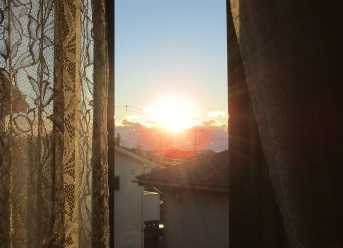 2022年1月1日 気温-2~5℃、晴れ明けましておめでとうございます今年もよろしくお願いします(我が家の2階からの初日の出。)