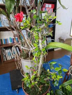 今日は気温-1~8℃、晴れである。明日は気温1~9℃、曇り時々晴れの予報である。1月9日に開花したハイビスカスの花が14日目の今日になって落ちていることがわかった。(14日目のハイビスカス。完全にしおれているように見えるので触ってみたら、)(落ちていた。)(本来は赤〇部分にあった花が、下の枝葉にひっかかっていた。)そうなるともっと前から落ちていたかも?であるが、昨日の写真と比較すると、昨日は花がまだ空中にあるように見えるので、落ちたのは昨日から今日にかけてのようだ。(左が昨日で右が今日である。)ハイビスカスの花は基本的には一日花であり、屋外に出している4~11月では寒い時期で最長でも4日目ぐらいには落ちるので、今回の14日はダントツの最長記録更新である・・・・と、思ったが、過去の記録を調べてみると、2017年3月11日に咲いた花が落ちたのは23日目の4月2日だった・・ということで上には上があった。なお、新しい蕾が出てるかどうか探してみたが、今日のところは見つからなかった。・・・・・・(赤のクリスマスローズの蕾。)(アルメリアの蕾。)(冬越しサルビアの蕾。)(カランコエの蕾。)(ムスカリの蕾。)(ハナカンザシの蕾。)(フユシラズの蕾。)(スノードロップの2輪目。)(ヒメリュウキンカは今日は開いた。)(オキザリス・バリアビリス。)
