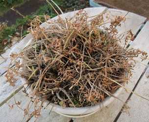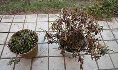 今日は気温-1~9℃、晴れである。明日は気温3~12℃、晴れのち曇りの予報である。フロックスの切り戻しと植替えをした。(切り戻し前のフロックス。5号鉢に植えてあり、左が青のムーディブルーで右がピンクのカロリナである。)(葉茎はだいぶ枯れている。)(切り戻し後。)(それぞれ新芽が出ている。)(次に植替えのために鉢から抜いた。右のカロリナはだいぶ根が回っている。)(それぞれを7号鉢に再植付け。)どちらも2019年2月に買った苗を5号鉢に植付けて以来の初めての植替えである。開花は4-5月の予定である。(昨年4月のムーディブルー。)(5月のカロリナ。)・・・・・・・(ハイビスカス。明日はどこまで開くか楽しみである。)(日本水仙の蕾。開花宣言は明日かな?)(地植えマラコイデスの蕾。)(種蒔きビオラ31号の蕾。)(スノードロップの蕾。)