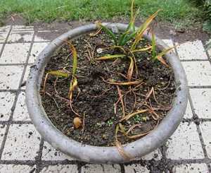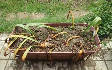 今日は気温18~22℃、晴れ時々曇りである。明日は気温18~20℃、雨の予報である。スノードロップの球根を掘り上げた。(掘り上げ前のスノードロップのプランター。65球植えてあった。)(掘り上げた球根。出来は可もなく不可もなくという感じである。)(スノードロップは腐りやすいようなので、ベンレート水和剤0.5gx4包を1リットルの水に溶かした溶液に30分強浸して消毒した。)この球根は明日には乾燥防止のために培養土と一緒にポリ袋に入れて室内保管して秋に再植付けする予定である。(今年2月のスノードロップ。)・・・・・・・(こぼれ種のリクニスが開花した。)(ブローディアの蕾。)(八重ドクダミの蕾。)(ブラシノキの蕾。)(チリアヤメ。)(オーニソガラム・アラビカム。)(ユズの花。)(ワトソニアの白花も咲いていた。白は2年ぶりである。)(マリーゴールド4株を定植。累計20株。)(発芽したダリア3ポットを8号鉢に追加定植した。)(未発芽の残り4ポットはもうしばらく様子を見る。)