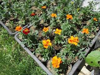 今日は気温9~16℃、晴れである。明日は気温12~22℃、晴れの予報である。カマシアが開花した。(カマシア。)昨年の4月27日からは1週間近く遅れたが、一昨年の5月4日よりは1日早かった。・・・・・・3月31日に種蒔きをしたマリーゴールドのポット上げをした。(ポット上げ前のマリーゴールド。)(蕾が出ているのもある。)36連の連結ポットの1区画に2粒ずつ種蒔きをした結果、1区画に2株発芽してるものと1株だけのものがあり、まず、2株発芽してるものを1株ずつ9cmポットに移植した。(ポット上げしたマリーゴールド。44株である。)(白い粒は化成肥料である。)(残った1区画1株のもの計11株は後日。)咲き始めは5月中旬~下旬の見込みであるが、咲いたものから順次プランターに4株単位で定植する予定である。(昨年7月のマリーゴールド。)・・・・・・(アグロステンマの蕾。)(フリージアの蕾。)(オーニソガラム・アラビカムの蕾。黄色と紫の花びらは抜きそびれたこぼれ種ビオラである。)(地植えのホメリアも開花した。)(プランター植えのホメリア。)(スパラキシス。)(冬越しサルビアを4株定植。累計8株。)
