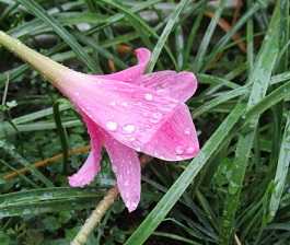 今日は気温25~29℃、雨のち曇りである。台風13号は昨夜上陸前に熱帯低気圧に変わったようだが、当地では今朝までにだいぶ雨を降らした。(朝起きたらハイビスカスの鉢が倒されていた。)(蕾も1個落ちた。)明日は気温25~30℃、晴れ時々曇りの予報である。ゼフィランサス・カンディダ(タマスダレ)が開花した。(ゼフィランサス・カンディダ。地植えのものである。)(次の蕾。)昨年の開花は9月6日だったので今年は3日遅れた。(また、鉢植えのにも蕾が出てきている。昨年は開花しなかったので2年ぶりである。)・・・・・・・(ハイビスカスの125輪目。蕾は1個落ちたものの花は落ちなかった。)(126輪目の蕾。)(最初に蕾を見つけたオキザリス・ボーウィが開花した。)(ゼフィランサス・エージャックス。)(ゼフィランサス・カリナタの蕾。)