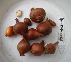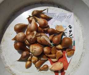 今日は気温21~25℃、曇りである。今夜は雨で、明日は気温22~29℃、雨のち曇り時々晴れの予報である。チューリップ・ザ・ファーストの球根を植付けた。(ザ・ファーストの球根。5月に掘り上げたものである。)(8号鉢に小さいのも含めて11球全部植付けた。ちなみに昨年は7号鉢に9球だった。)(土を被せて水やりをして作業終了。)開花は3月の予定である。(今年3月のザ・ファースト。)・・・・・・・(ハイビスカスの151輪目の蕾。今日の開花はなし。)(白のリコリスの蕾。)(コルチカム。)(フジバカマの蕾。)(小菊。)(ムクゲ。)(ゼフィランサス・エージャックス。)