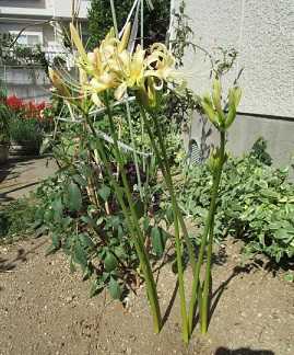 今日は気温21~23℃、曇り時々雨でありだいぶ涼しく感じる。明日は気温21~25℃、晴れの予報である。白のリコリスが発芽した。(白のリコリス。)(奥の一番伸びたものの右下にも発芽しかかってるものがあり、それを含めると6本ある。)昨年の発芽は9月5日だったので今年は半月以上遅れたがおそらく残暑のためである。開花は10月初めの見込みである。(昨年9月の白のリコリス。)(なお、鉢植えの白のリコリスはまだ発芽してない。緑のものはこぼれ種のマラコイデスであるが残暑が厳しくてポットに移植しても枯れそうなのでそのままにしていた。)・・・・・・黄花カタクリの球根を植付けた。(黄花カタクリの球根。6月に掘り上げたものである。)(8号鉢2個に例年と同じく5球と8球の計13球植付け。)(土を被せて水やりをして作業終了。)(余った球根は廃却。)開花は4月の予定である。(今年4月の黄花カタクリ。)・・・・・・(ハイビスカスの146輪目。)(147~148輪目の蕾。)(コルチカム。)(明日はラナンキュラスの球根を植付ける予定なので、事前準備として、5月に掘り上げた球根と、)(先日新たに買った球根を、)(濡らしたキッチンペーパーに包んだ。)ラナンキュラスの球根は急に吸湿させると腐るらしいので徐々に吸湿させるための措置である。