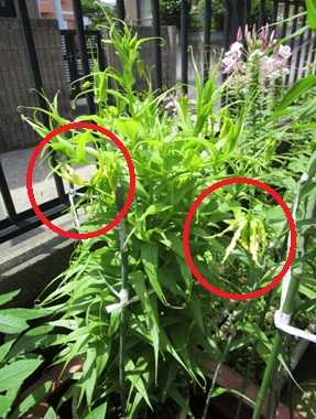 今日は気温24~28℃、晴れ時々曇りである。明日は気温24~28℃、曇り時々晴れの予報である。黄色のグロリオサの蕾が出てきた。(左の赤〇のあるのが黄色のグロリオサで右の背の高いのがあずき色のグロリオサである。)(黄色のグロリオサの蕾。)昨年は蕾を見つけたのは6月26日だったので今年はちょっと遅れた。開花は7月中旬の見込みである。(昨年7月の黄色のグロリオサ。)なお、黄色のグロリオサは例年より背が低く、逆にあずき色は例年より高い印象であり、背丈の違いがこれほど極端に表れたのは初めてである。(あずき色のグロリオサの蕾。)(ピンクのグロリオサ。)・・・・・・・トリトニアの球根を掘り上げた。(掘り上げ前のトリトニアのプランター。標準プランターに約60球植えてある。)(掘り上げた球根。例年通りかなり増えている。)この球根は室内で陰干し保存して秋に再植付けする予定である。(今年5月のトリトニア。)・・・・・・・(マリーゴールド65号の蕾。)(サルビアを4株定植。累計20株。)
