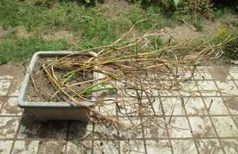 今日は気温24~26℃、雨である。夜中に強い雨が降ったようだが、朝には雨足は弱まっていた。また、風も強かったのか?オリエンタルリリー・カサブランカ、マンボ、マレロの鉢が倒れていた。明日は気温25~27℃、雨の予報である。カマシアの球根を掘り上げた。(掘り上げ前のカマシアの鉢。7号鉢に小さいのを含めて18球植えてあった。)(掘り上げた球根。昨年よりやや減ったかも?である。)(ちなみに昨年掘り上げた時の球根。)この球根は室内で陰干し保存して秋に再植付けする予定である。(今年5月のカマシア。貧弱な花しか咲かなかったが、咲く前に蕾がしおれた昨年よりはマシだった。)・・・・・・・(ハイビスカス12号の蕾。今日の開花はなし。)(ヒメノカリスの蕾。雨の中だが今夜咲きそうだ。)(あずき色のグロリオサ。風で横向いている。)(ピンクのグロリオサ。)(クレオメ。)(ツルバギア。)(オリエンタルリリー・マンボ。朝にはカサブランカと共に風で倒れていた。)(オリエンタルリリー・マレロの蕾。これも倒れていた。)