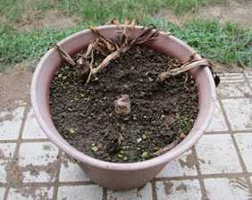 今日は気温21~25℃、曇りである。明日は気温22~24℃、晴れ時々曇りの予報である。秋咲きアマリリスの球根を植替えた。(植替え前の秋咲きアマリリスの鉢。8号深鉢に3球植えてあった。)(掘り上げた球根。親球3球の他に子球が2球できていた。)昨年は子球が8球だったので今年はだいぶ少ない。(元の8号深鉢に親球3球を再植付け。)(土を被せて水やりをして作業終了。)(余った子球2球は廃却。)開花は9月の予定であるが、秋咲きアマリリスは2019年を最後に5年間咲いてない。開花条件が何かあるのだろうとは思うが不明であるので、今年も期待せずに待つことにする。(2019年9月の秋咲きアマリリス。)・・・・・・(青のアガパンサスが咲いた。)(ハイビスカスの7号。)(8号の蕾。)(ヒメノカリスの蕾。)(あずき色のグロリオサの蕾。)(黄色のグロリオサの蕾。)(オリエンタルリリー・カサブランカの蕾。)(オリエンタルリリー・マレロの蕾。)(オリエンタルリリー・マンボ。)(クレオメ。)