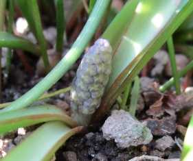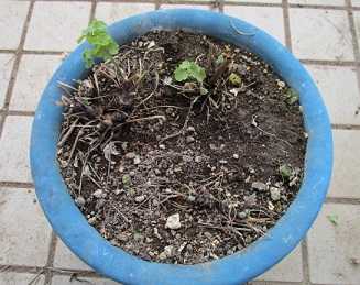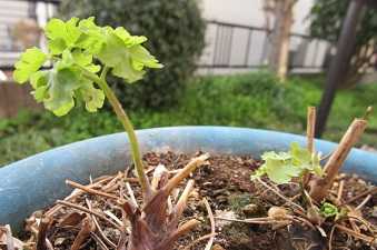 (枯れた葉茎を取り除くと新葉が出ている。)
