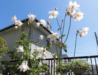 (オダマキの鉢。8号鉢に3株植えてある。)