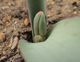 (ミニチューリップ・ポリケロマの蕾。蕾がもう一つ下に出てきた。)