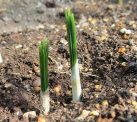 (地植えのクロッカスが伸びてきた。)
