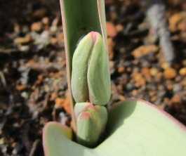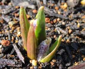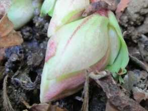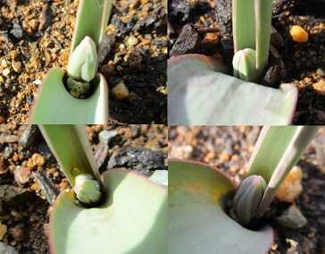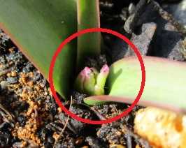 昨年の3月1日よりは半月ほど早いことになるが、昨年は追加球根の届くのが遅くて植付けが例年より1ヶ月遅かったため蕾も遅かったようであり、一昨年の蕾は2月12日、その前年は2月19日ということで今年の蕾は例年並みのようだ。